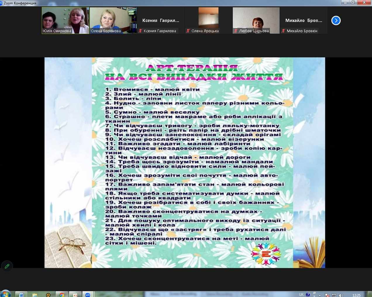 Практичний психолог Олена Воронова познайомила присутніх ще із новим трендом мистецтва - дудлінгом. Дудлінг і зентангл застосовують у психології та медитації для зняття стресу і втоми. А, також, дала поради щодо арт-терапії на всі випадки життя.
