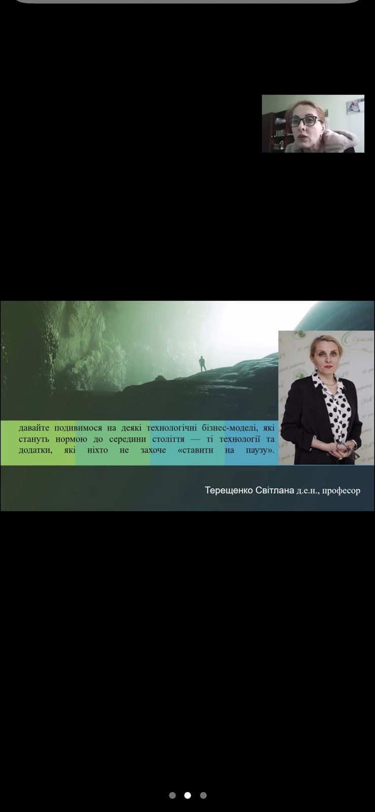 02 квітня 2024 року для студентів економічних спеціальностей "Облік і оподаткування", "Підприємництво та торгівля" була проведена гостьова лекція професором, д.е.н. Світланою Терещенко на тему: "Бізнес-тренди 2050".