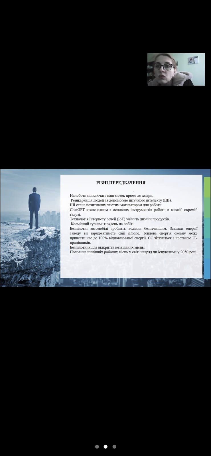 В ході бесіди Світлана Іванівна довела до відома присутніх інформацію про те, що як саме інновації змінюють наше життя і зупинилась на таких питаннях :"Як зміниться країна та наше життя? Що стане доступніше? Чи зможемо ми заробляти більше, або навпаки-гроші втратять цінність? Як адаптувати економічні та бізнес-процеси?"
