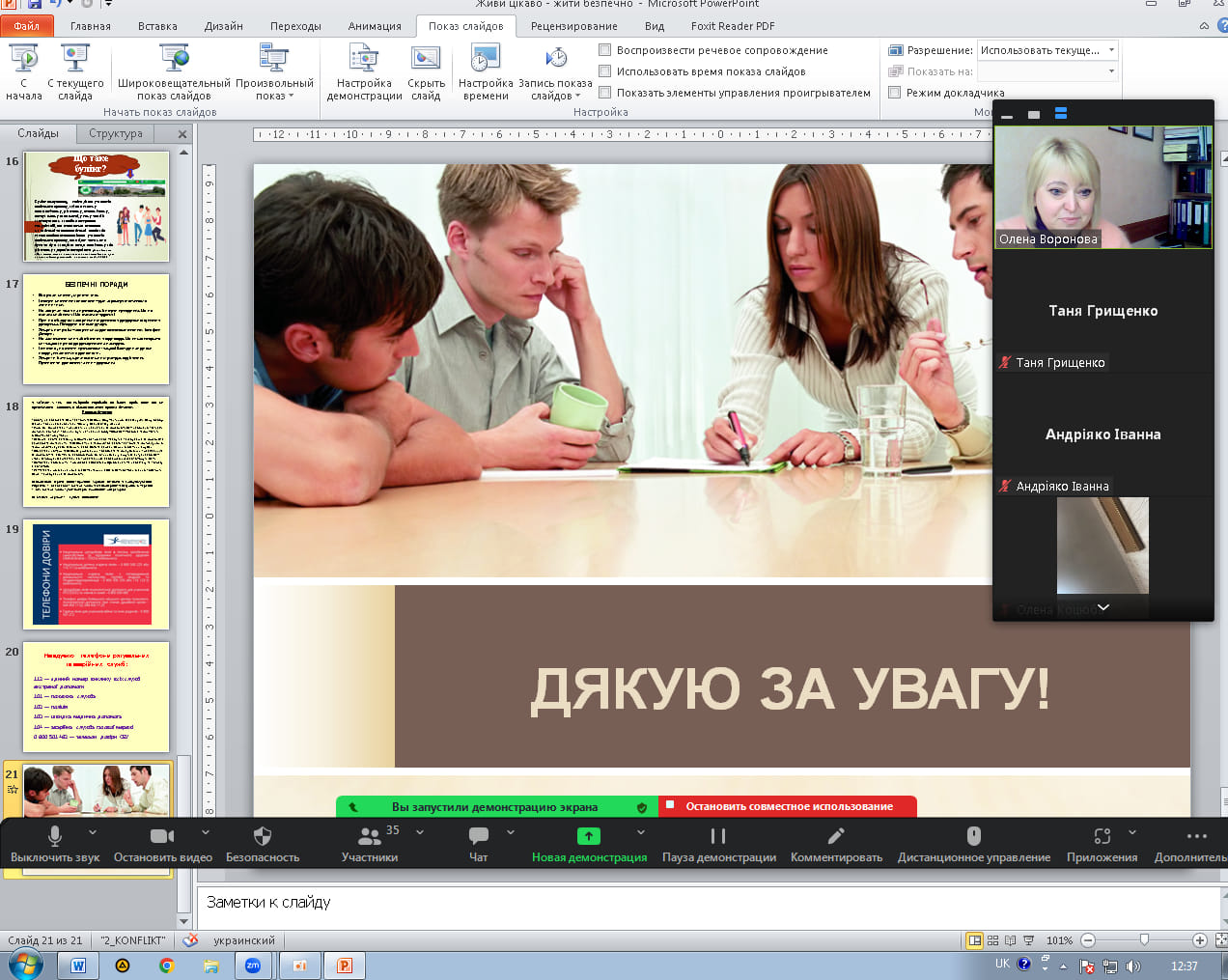 Обговоренню цих проблем і був присвячений квест-марафон: "Жити цікаво - жити безпечно", який психологиня коледжу Олена Воронова провела для студентів перших курсів навчання.