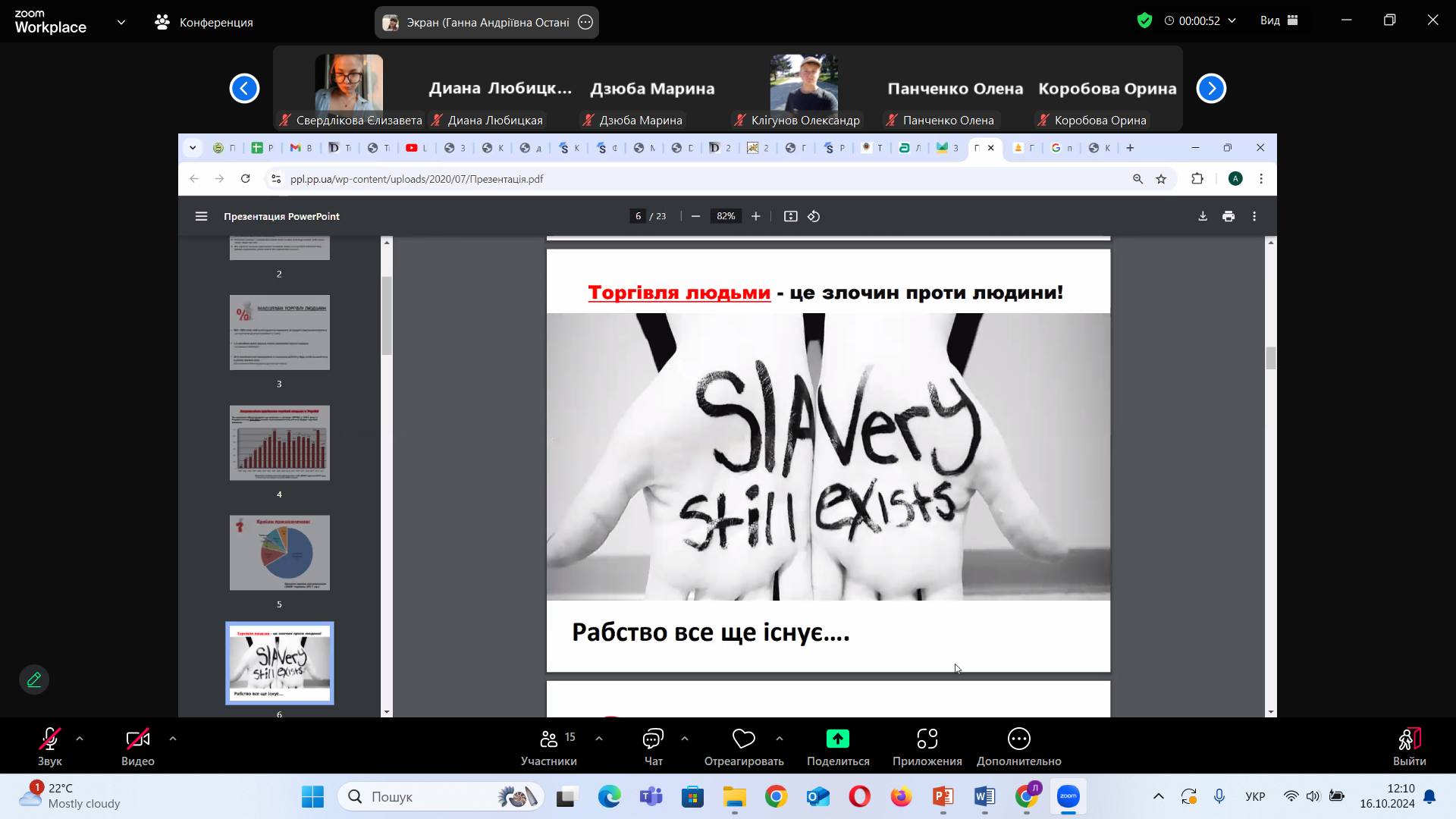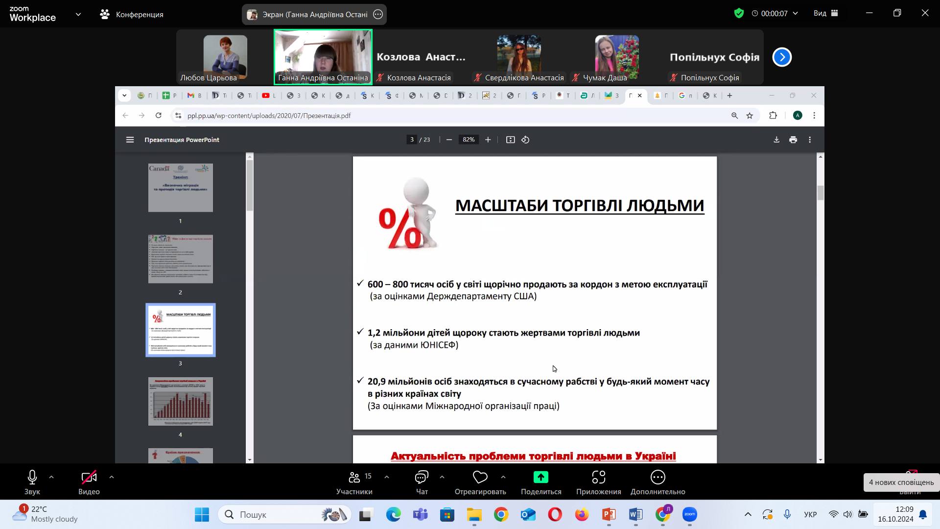 Таку годину спілкування провели куратори груп економіко-правового відділення напередодні Європейського дня боротьби з торгівлею людьми. Говорили про форми торгівлі людьми, сьогоднішні масштаби торгівлі людьми, а головне - розвінчали основні міфи, зокрема: зі мною такого не може статися, це може статися тільки у великому місті або взагалі в іншій державі, моя поїздка за кордон цілком безпечна та ін. Розглянули ознаки сумнівних оголошень про працевлаштування, правила безпеки перед виїздом, за кордоном. Акцентували увагу на питанні куди звертатися в Україні та за кордоном за допомогою у разі потрапляння у скрутні ситуації. Бережіть себе, не станьте жертвами торгівлі людьми!