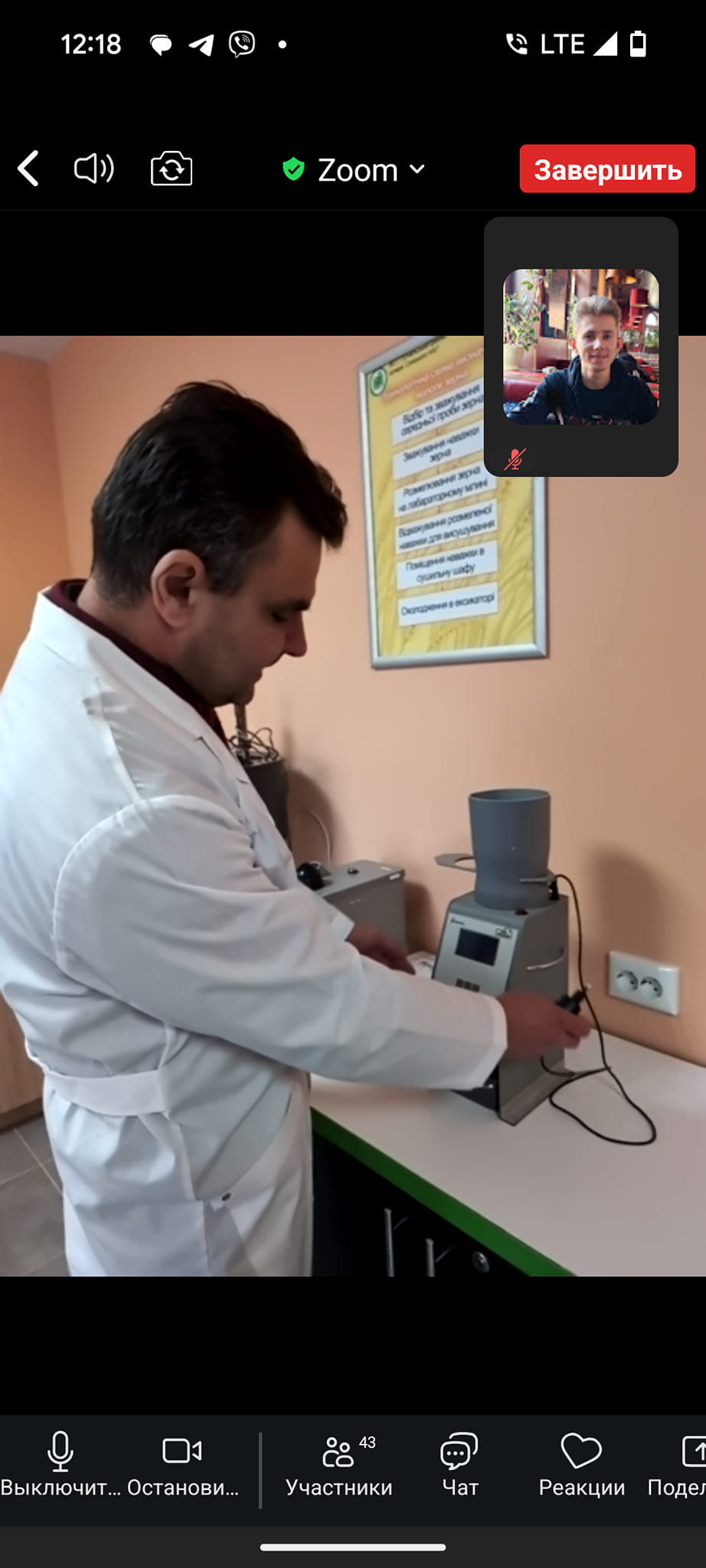 Викладач технологічних дисциплін Тельонков Олександр Євгенійович провів для студентів спеціальності 181 Харчові технології Online майстер-клас з оцінки якості зерна. Студенти ознайомились методиками та обладнанням для визначення вологості та натури зерна. Отримані результати зі зразків зерна порівнювали з даними зазначеними в ДСТУ, зерно відповідало вказаним нормам.