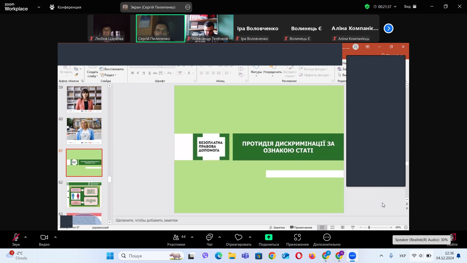 Студенти познайомили присутніх з причинами, які призводять до дискримінації за ознакою статі у сучасному суспільстві, провели цікаву Вікторину щодо проблем гендерної рівності, особливу увагу було приділено правовим аспектам протидії дискримінації за ознакою статі.
