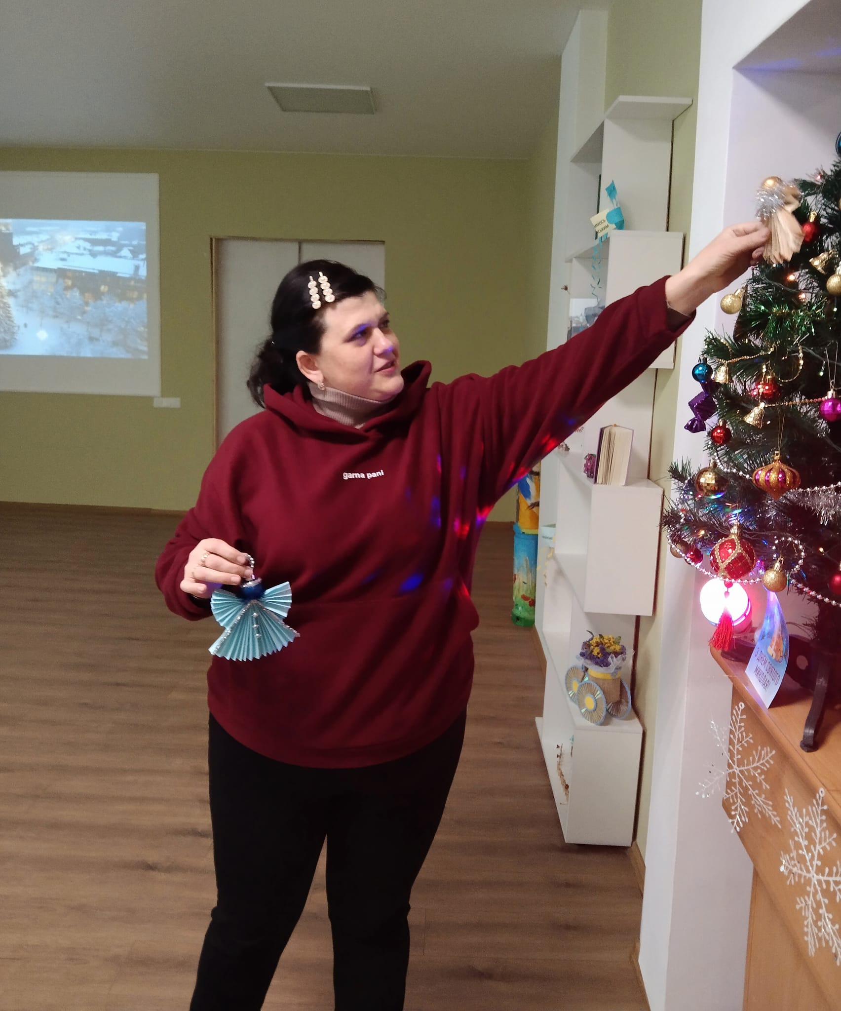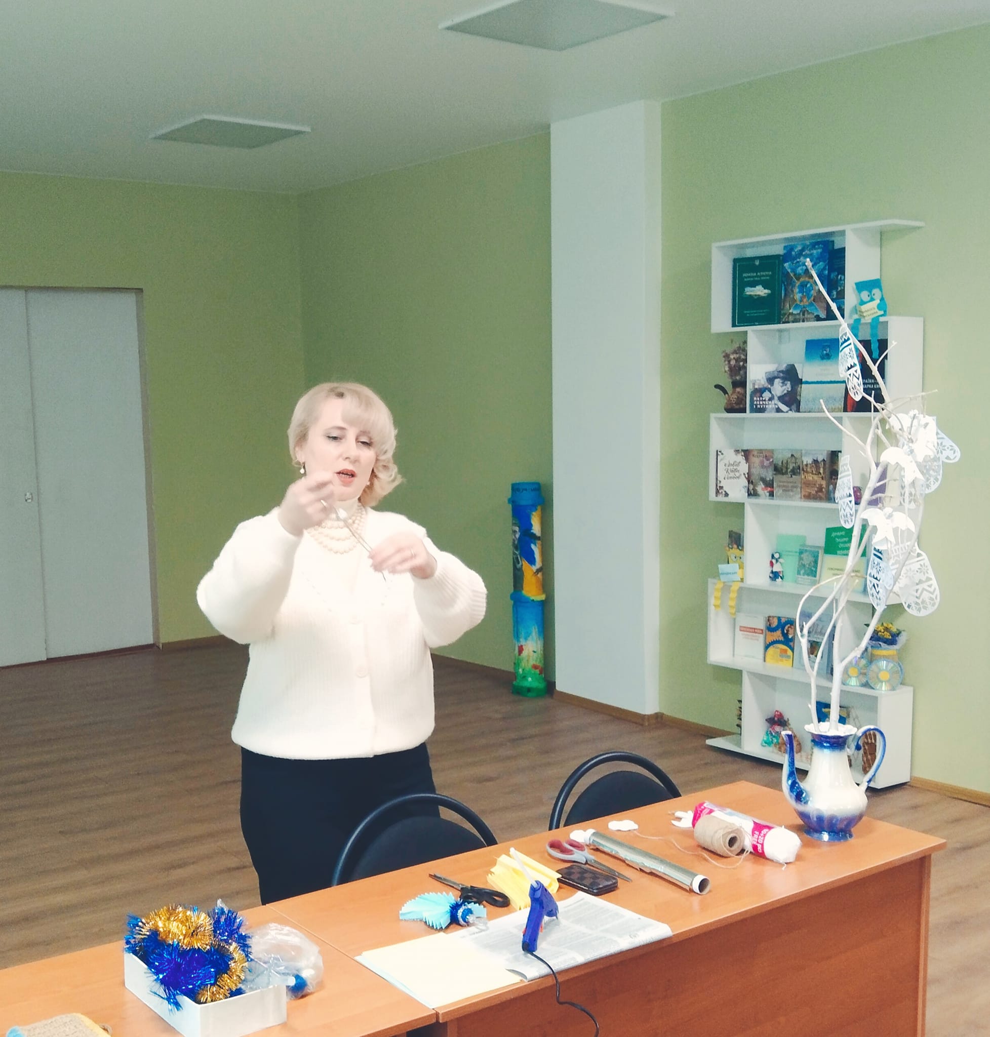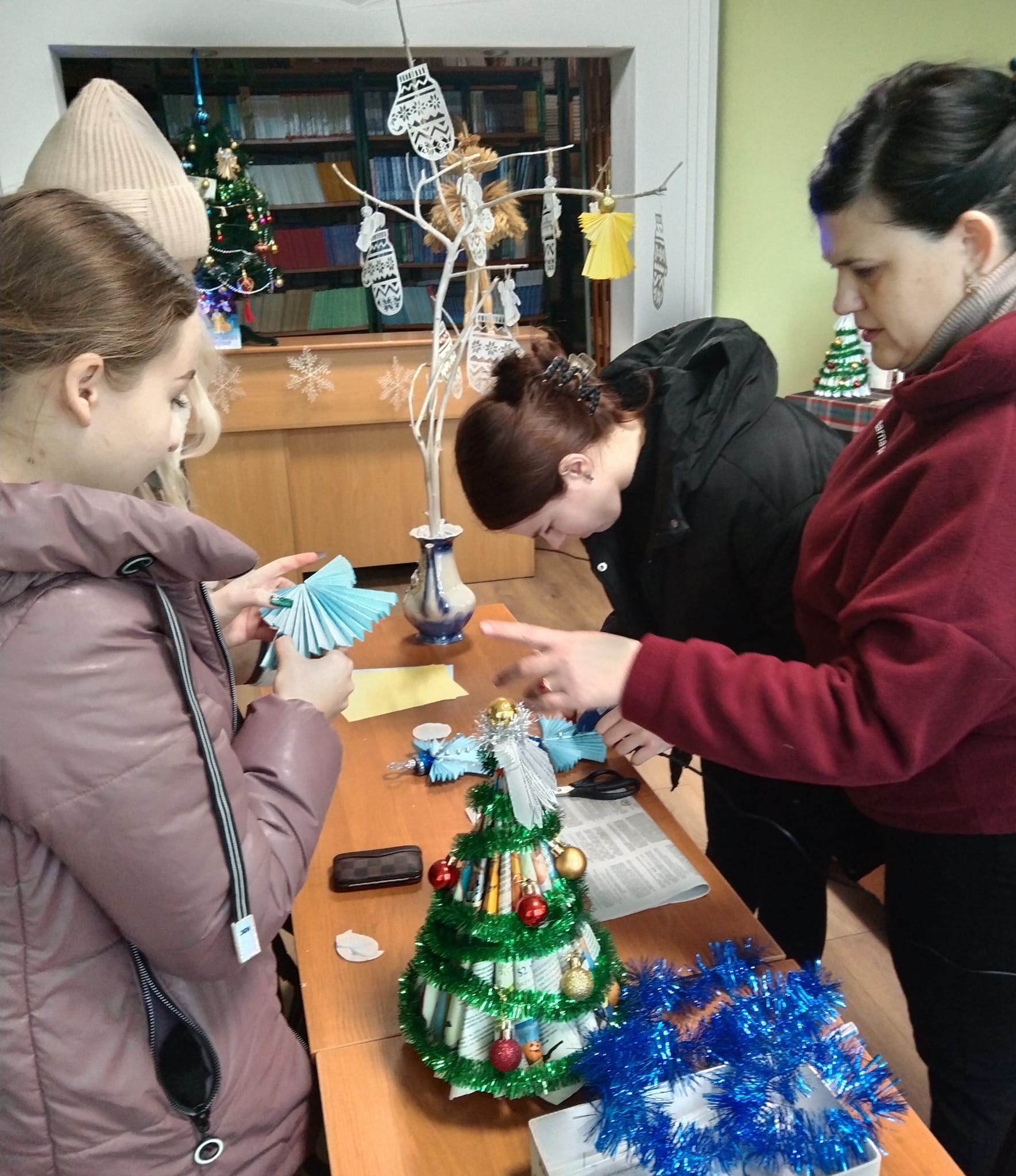 Бібліотекарі Юлія Смирнова та Наталія Пилипенко розповіли про різні техніки виготовлення ялинкових прикрас.