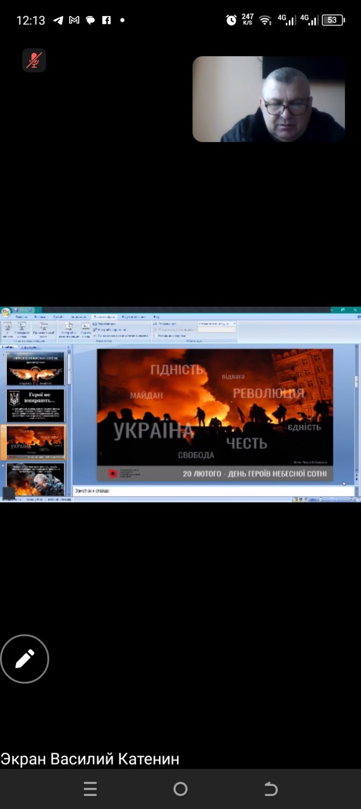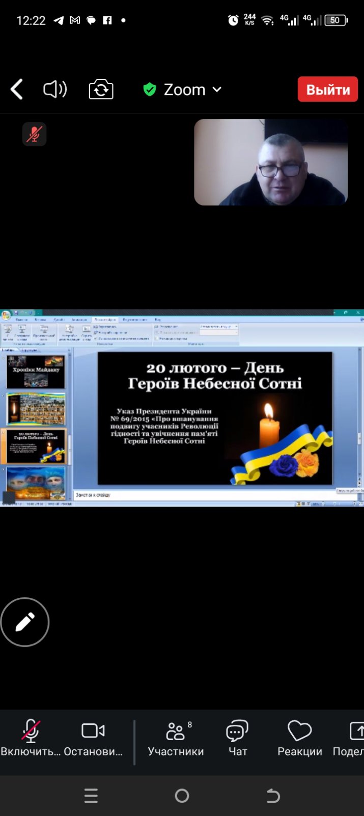 Куратор групи Василь КАТЄНІН та студенти відділення ветеринарної медицини на виховній годині вшанували мужність, прагнення до волі та незалежності наших громадян, які загинули під час Революції гідності. Ольга ПОЛАДИЧ зазначила, що учасники Революції гідності захищали ідеали демократії, європейське майбутнє України. Їх назвали Небесною Сотнею – українців, які загинули в Києві на Майдані, на вулицях Грушевського та Інститутській