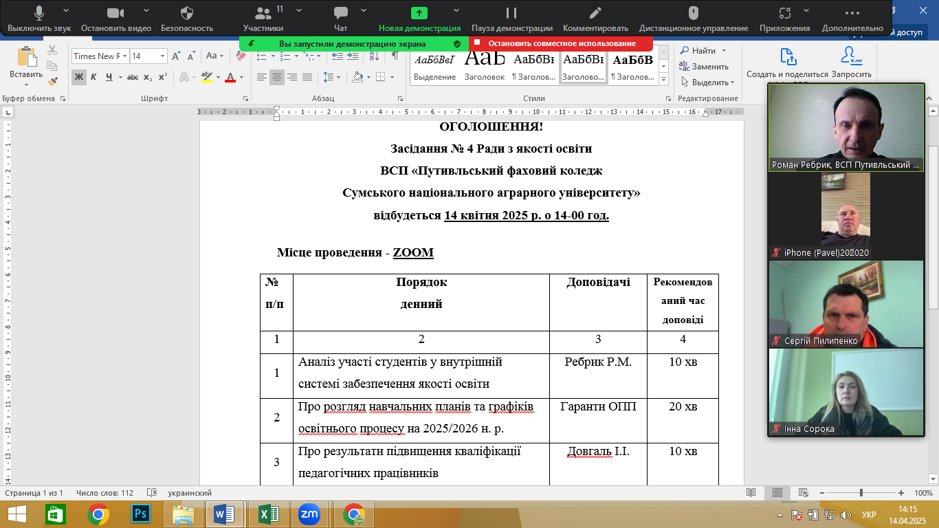 Відбулось планове засідання Ради з якості освітньої діяльності та якості освіти коледжу.