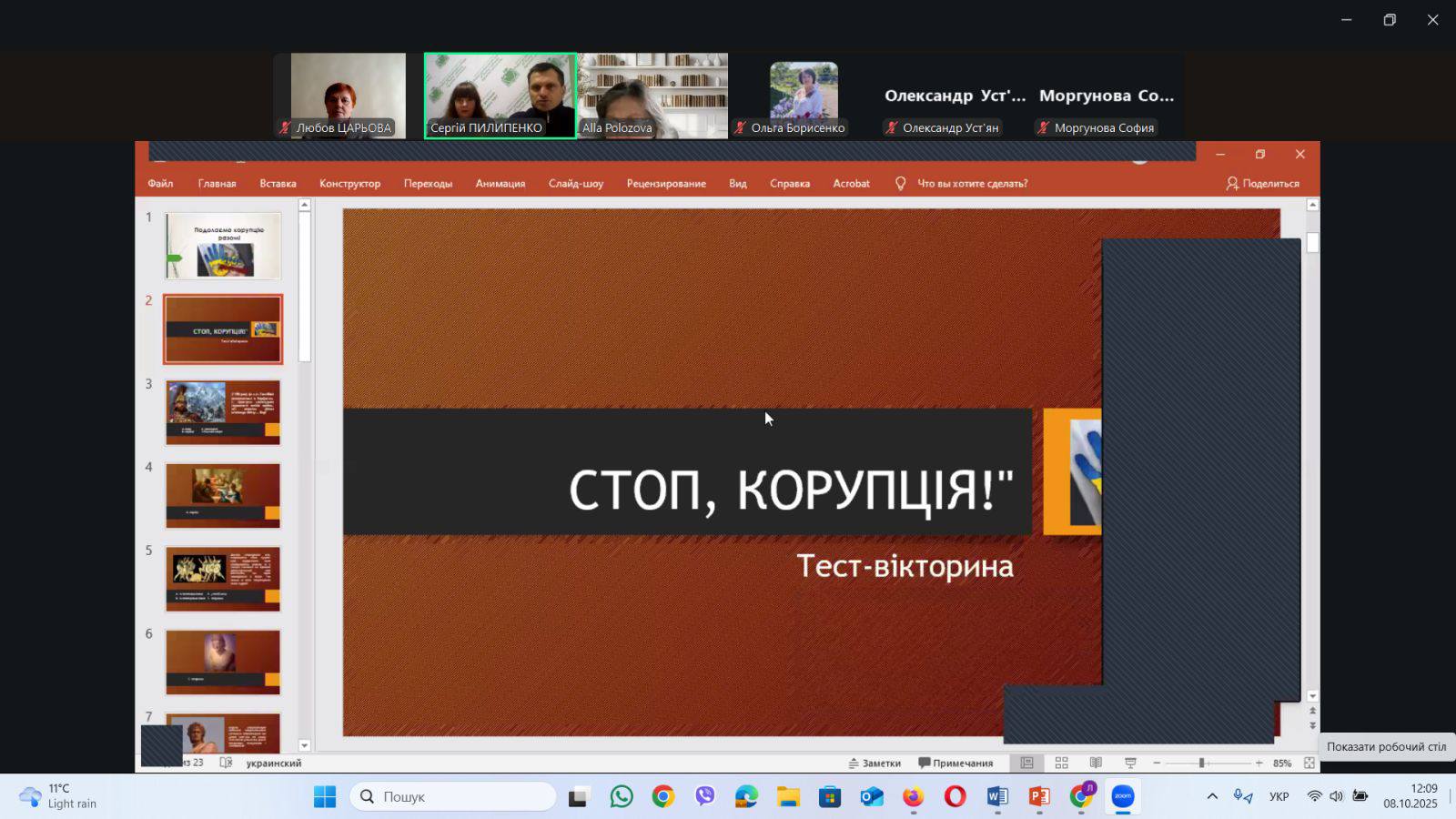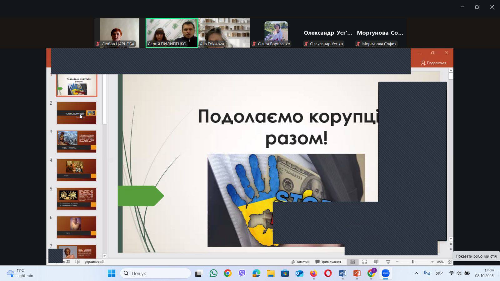 Подальша спільна зустріч запланована на початку листопада і 2-й урок також носить цікаву та актуальну тему:"Корупція краде можливості".