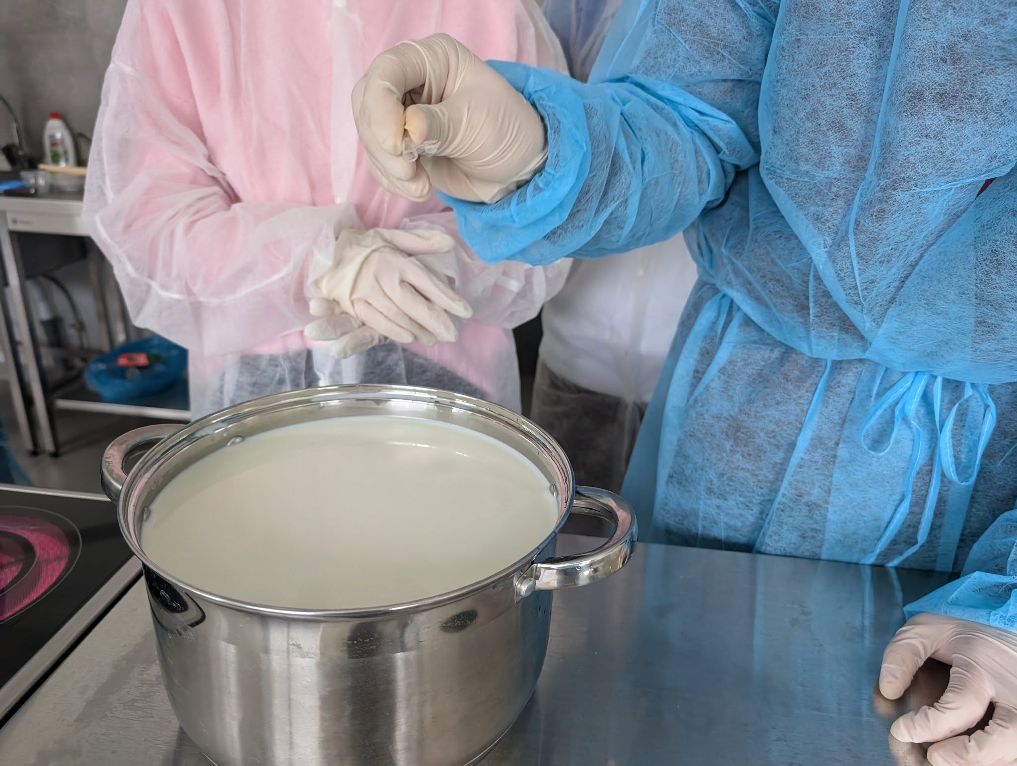 Протягом заняття студенти приймали активну участь у всіх основних етапах сироваріння: вимірювали температуру молока, вносили до молока бактеріальну закваску і ферменти, спостерігали за фізичними змінами молока і сирної маси, розрізали сирний згусток і відділяли сироватку, закладали сирне зерно у форму для пресування, з послідуючим солінням сиру, підсушили і відправили на дозрівання.