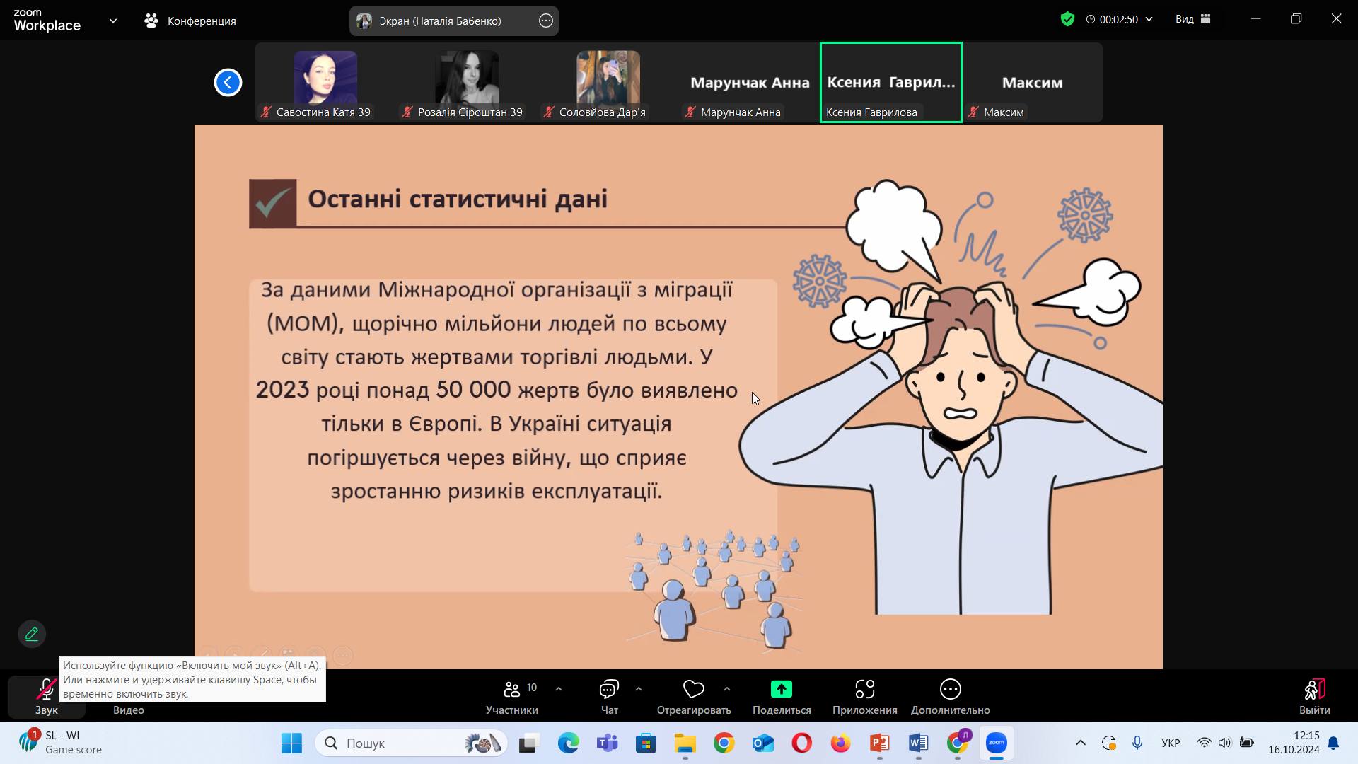 Таку годину спілкування провели куратори груп економіко-правового відділення напередодні Європейського дня боротьби з торгівлею людьми. Говорили про форми торгівлі людьми, сьогоднішні масштаби торгівлі людьми, а головне - розвінчали основні міфи, зокрема: зі мною такого не може статися, це може статися тільки у великому місті або взагалі в іншій державі, моя поїздка за кордон цілком безпечна та ін. Розглянули ознаки сумнівних оголошень про працевлаштування, правила безпеки перед виїздом, за кордоном. Акцентували увагу на питанні куди звертатися в Україні та за кордоном за допомогою у разі потрапляння у скрутні ситуації. Бережіть себе, не станьте жертвами торгівлі людьми!