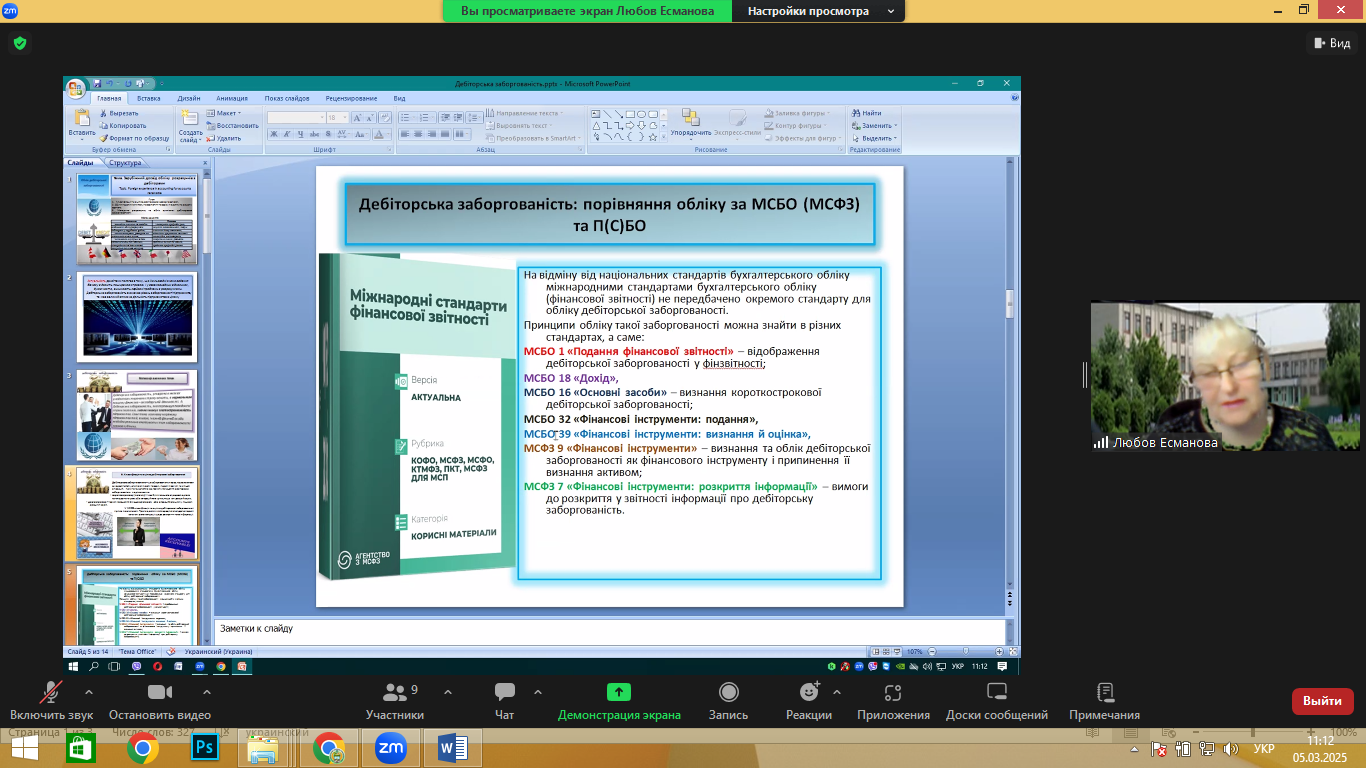 05.03.25 викладач облікових дисциплін, к. е. н Любов Іванівна Есманова провела відкрите онлайн-заняття з дисципліни «Облік у зарубіжних країнах» на тему «Облік дебіторської заборгованості».