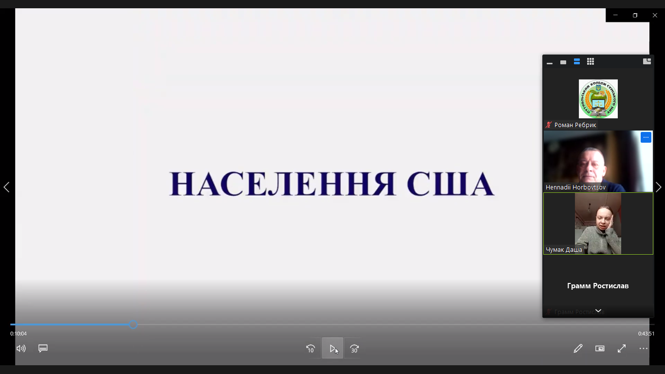 06.03.2025 року викладач першої категорії загальноосвітніх дисциплін Горбовцов Г.М. провів відкрите онлайн-заняття з дисципліни «Географія» на тему «США – місце країни у світі та регіоні».