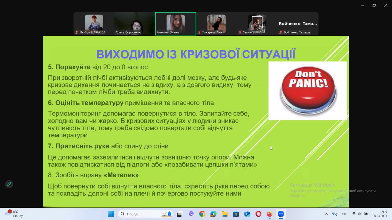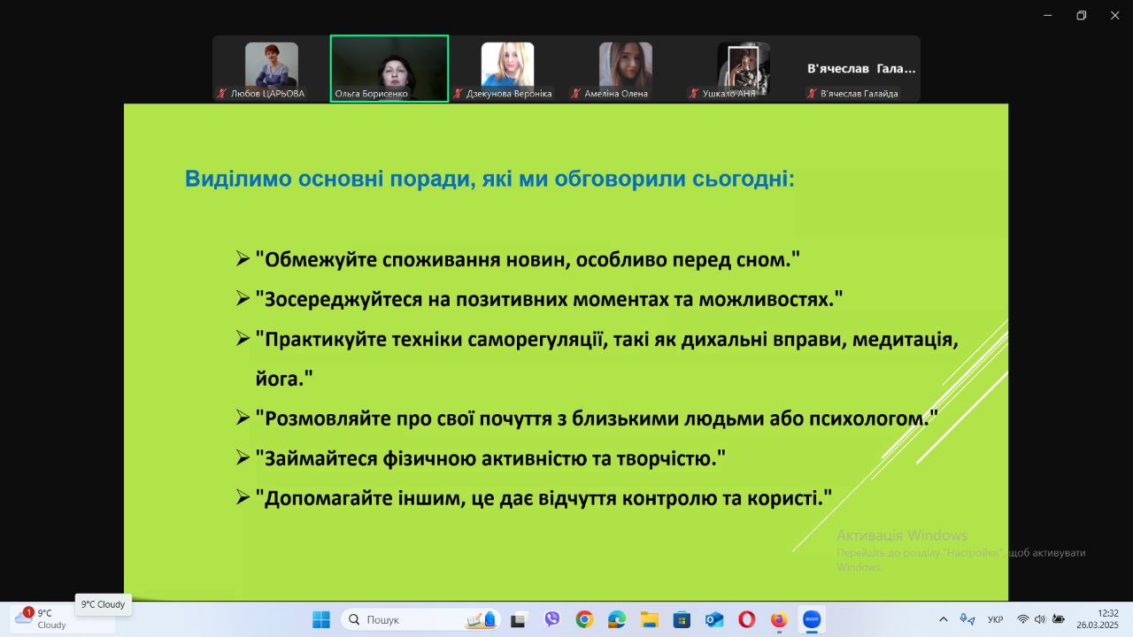 26 березня студенти 38 групи Олена Амеліна, Анна Токарєва, Тамара Бойченко, Ганна Ушкало, Вероніка Дзекунова разом з куратором Борисенко О.Л. провели захід на тему «Емоції під час війни. Як на нас впливають новини?».