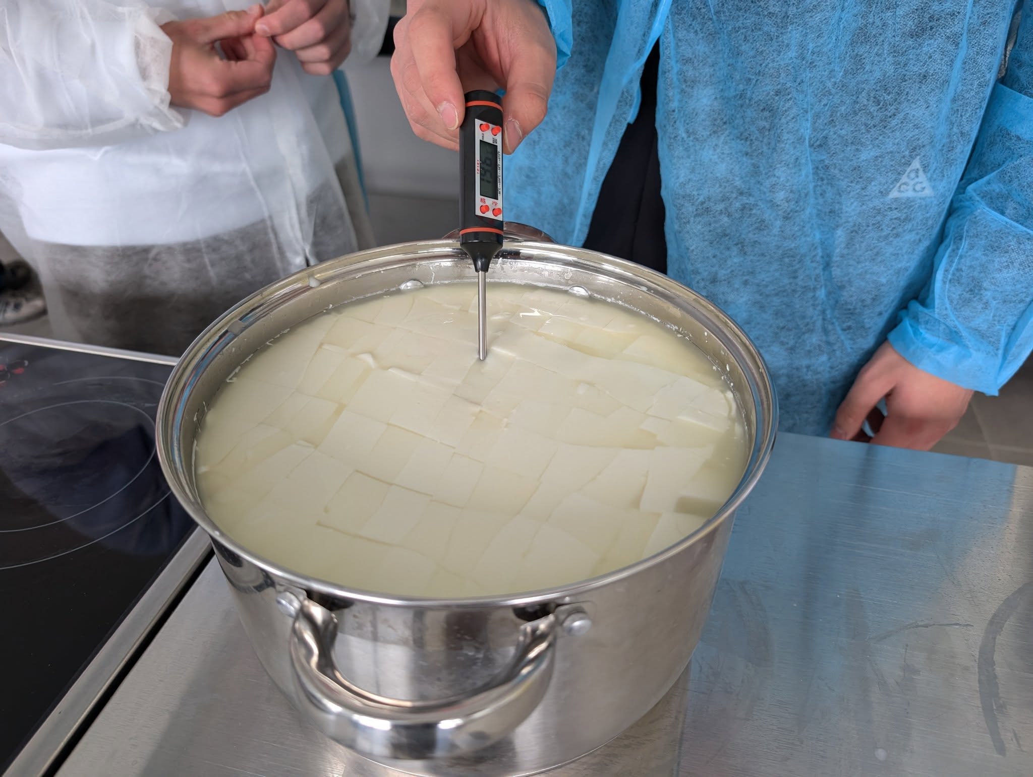 Протягом заняття студенти приймали активну участь у всіх основних етапах сироваріння: вимірювали температуру молока, вносили до молока бактеріальну закваску і ферменти, спостерігали за фізичними змінами молока і сирної маси, розрізали сирний згусток і відділяли сироватку, закладали сирне зерно у форму для пресування, з послідуючим солінням сиру, підсушили і відправили на дозрівання.