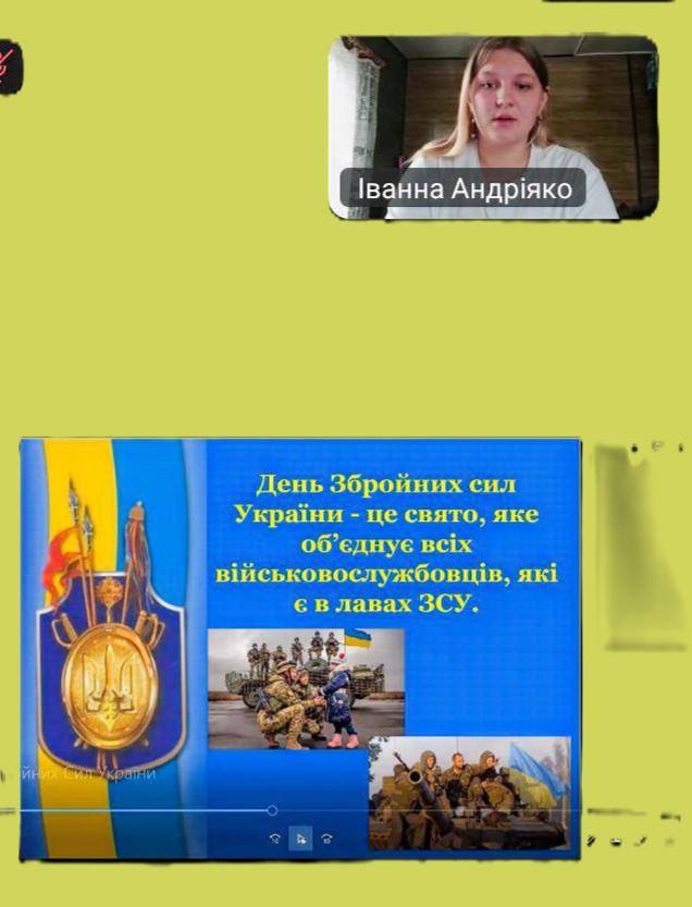 А на виховній годині студенти ознайомилися з історією створення Збройних Сил України, їхніми основними завданнями та сучасними напрямками розвитку. Особливу увагу було приділено героїзму українських військовослужбовців, які щодня боронять незалежність і територіальну цілісність нашої держави.